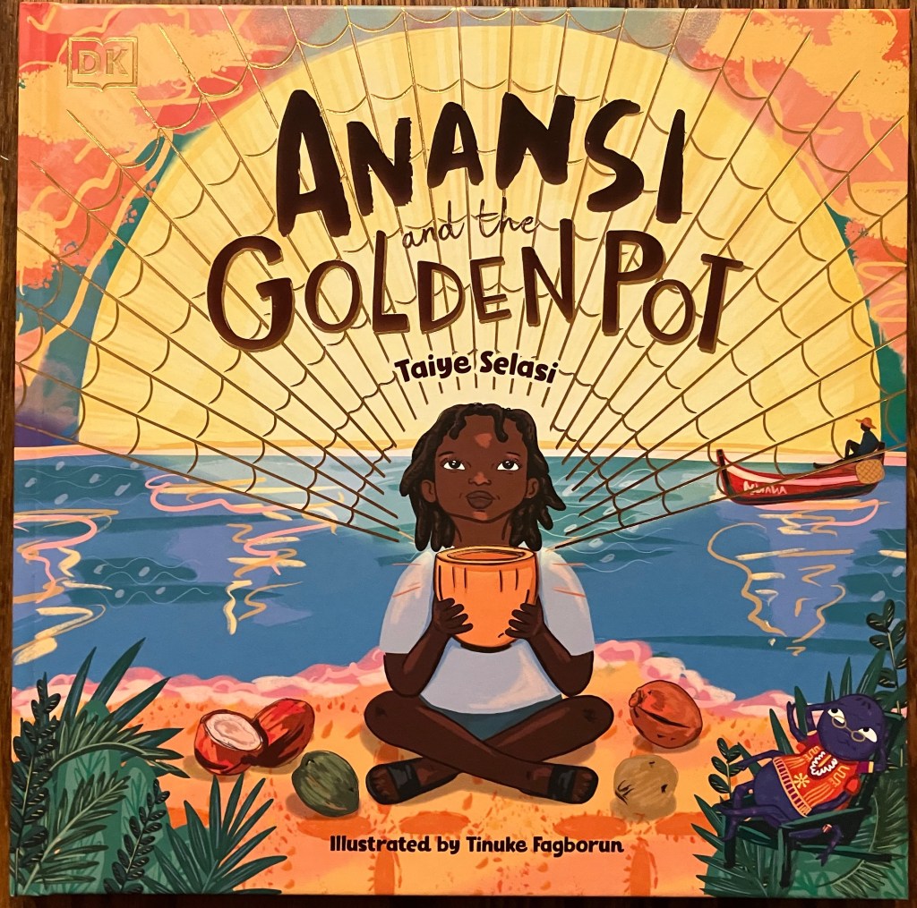 We’re back! After a too-long delay, we’re back with another book review – and what a book! This gorgeous, golden re-working of the story of Anansi the trickster spider, is a joyful mix of the traditional and modern, the funny and the wise.